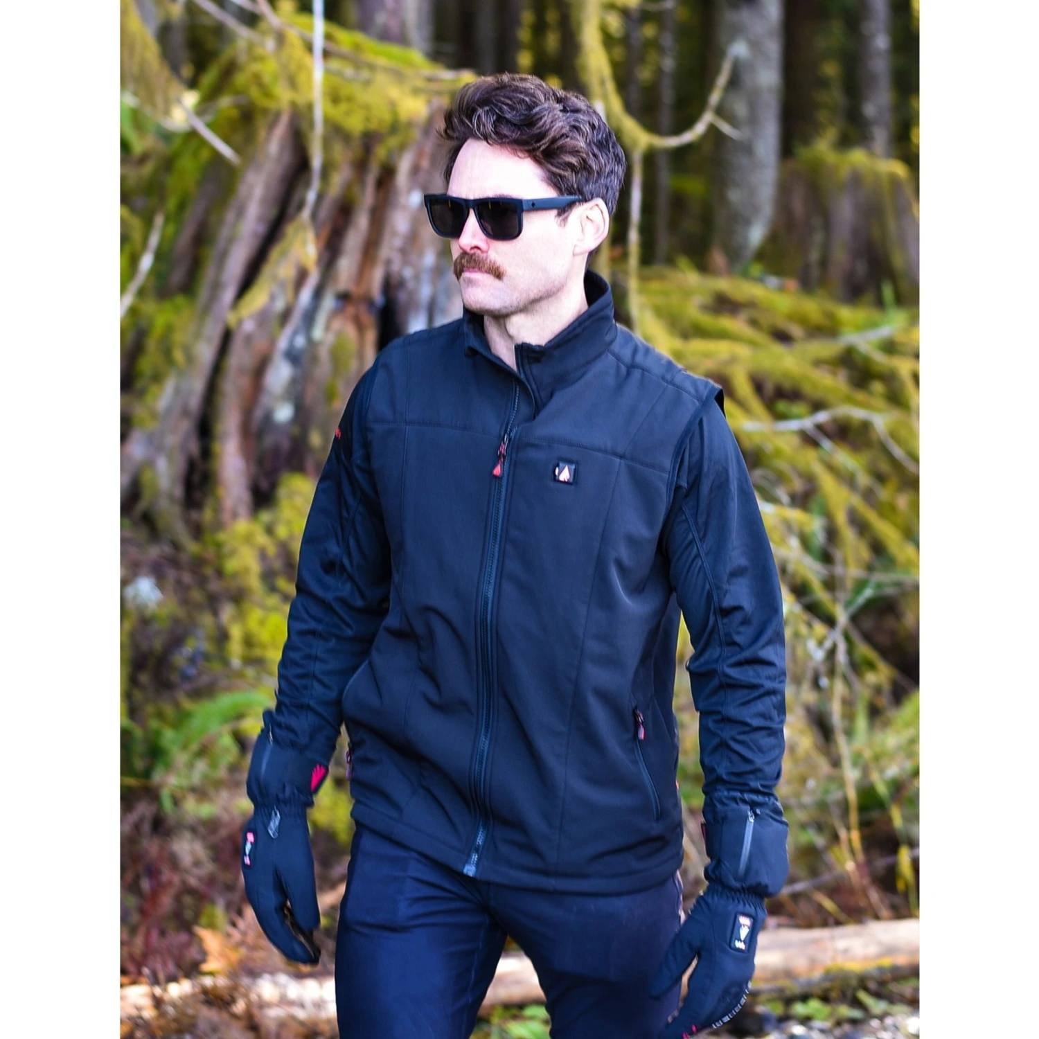 • Water-resistant softshell sheds rain and snow.