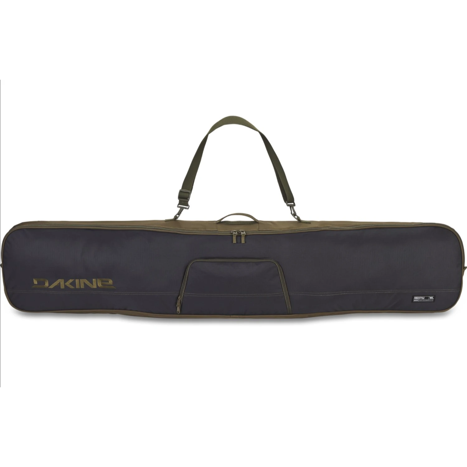 The Freestyle Snowboard Bag features a padded and tarp-lined design to protect your board. It also has zippered accessory pockets and can be folded up and stored when not in use.