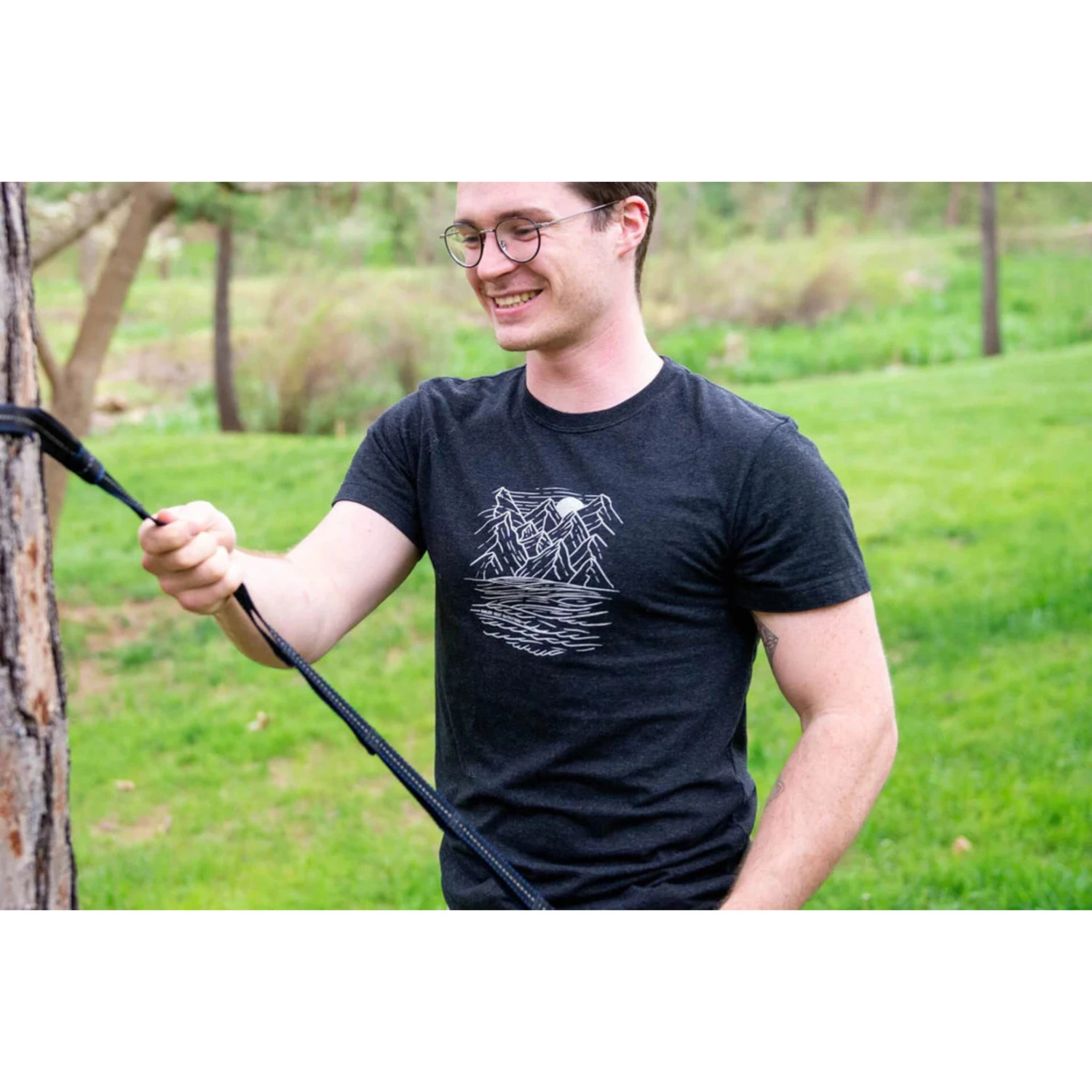 The Men’s Mountains to Sea Tee is made of recycled material and features a stylish graphic.
