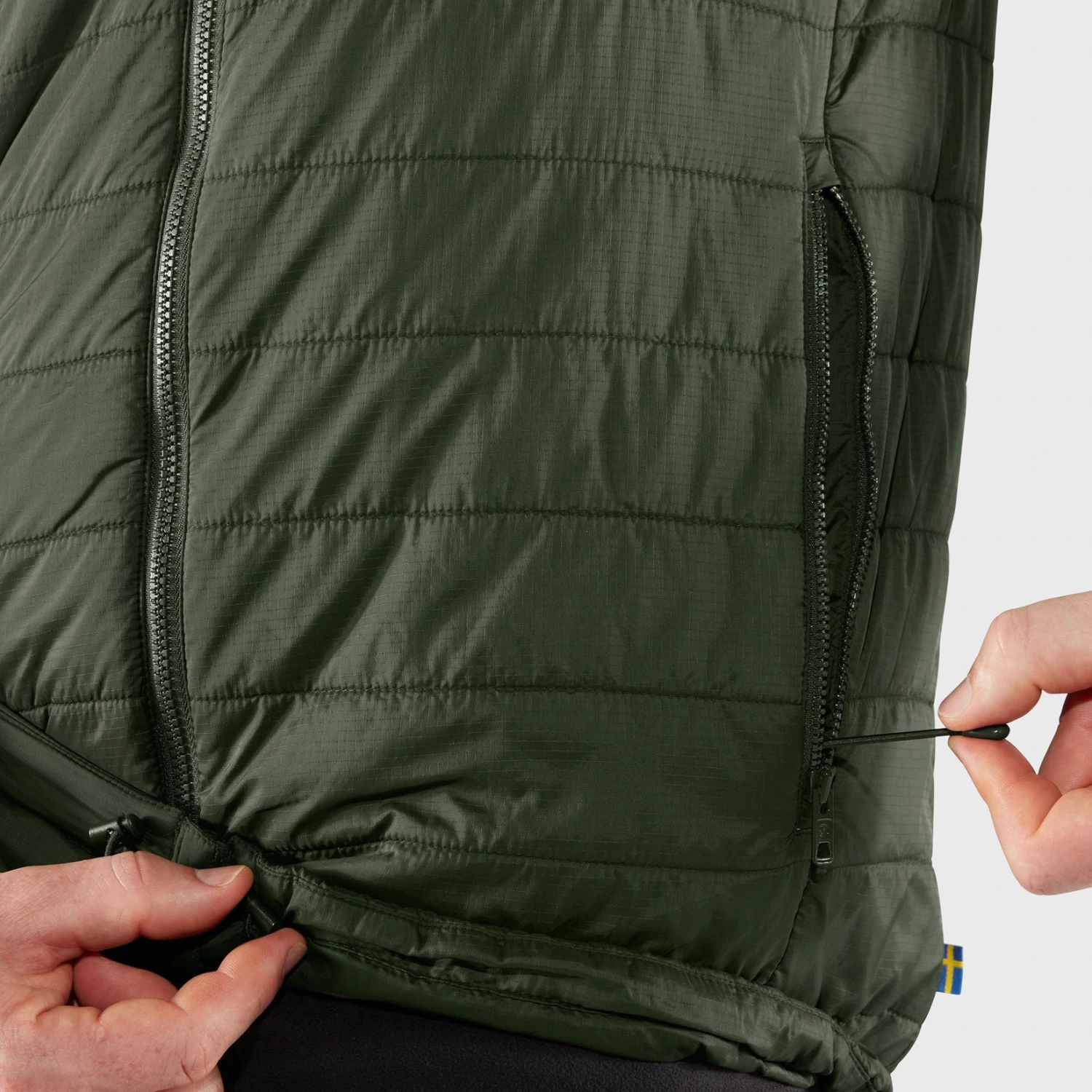 The Men’s Expedition X Latt Jacket works well by itself in warmer weather or as a mid-layer on colder days. This jacket features ultra-light padding and is made of pliant fabric in recycled polyamide.