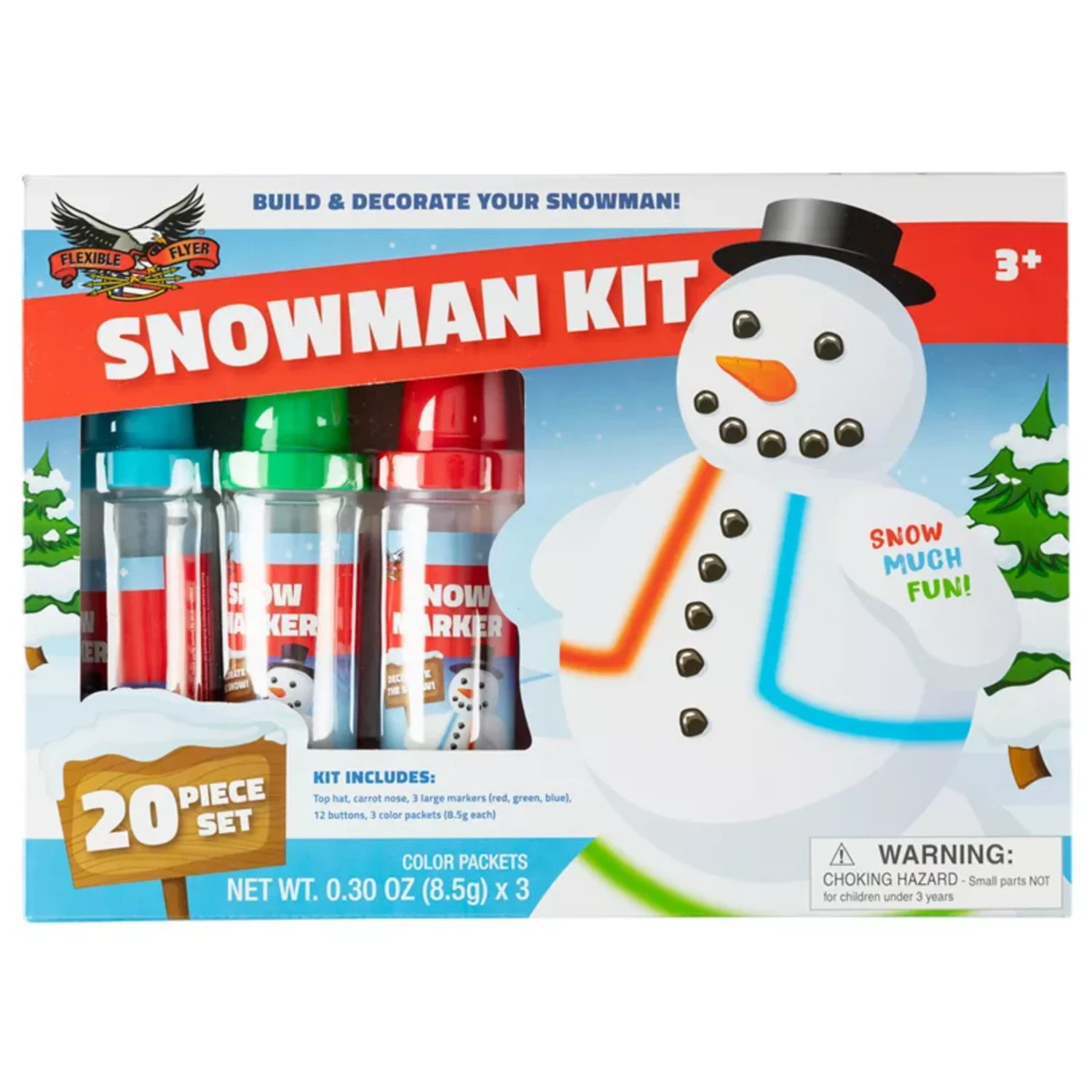 It’s SNOW much fun! With the Flexible Flyer® Snowman Kit you can build and decorate your own frosty friend. This 20-piece snowman decorating kit includes a top hat, carrot nose, 3 large markers in red, green, and blue, 12 buttons, and 3 color packets.