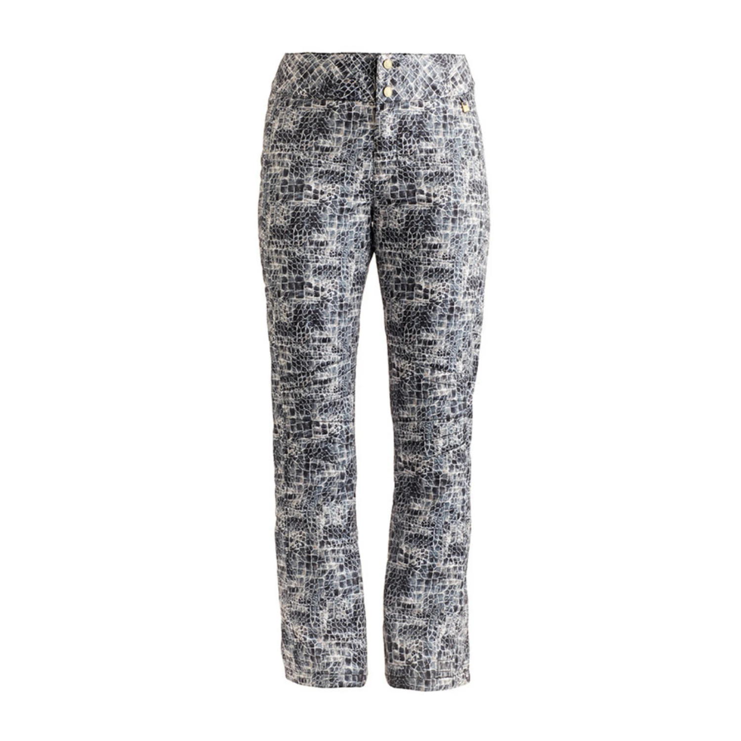 Mid-rise, slim fit, insulated stretch pant with internal waist adjustment, top stitching on the knees and zippered back pocket.