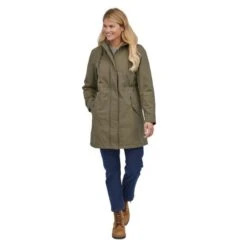 The Women’s Insulated Prairie Dawn Parka is mid-length and made of sturdy 100% organic cotton canvas, plus it features core-warming 60-gram Thermogreen® insulation.
