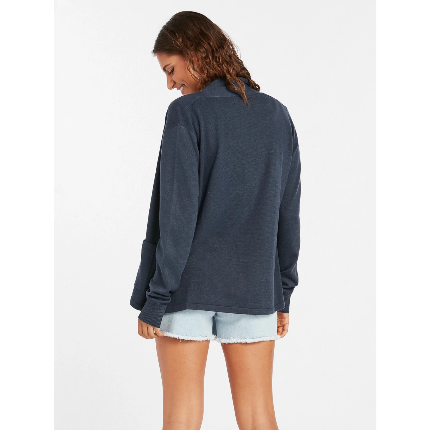The Women’s Breezy Babe Wrap features patch pockets, a fold-over shawl collar, and blouson sleeves.